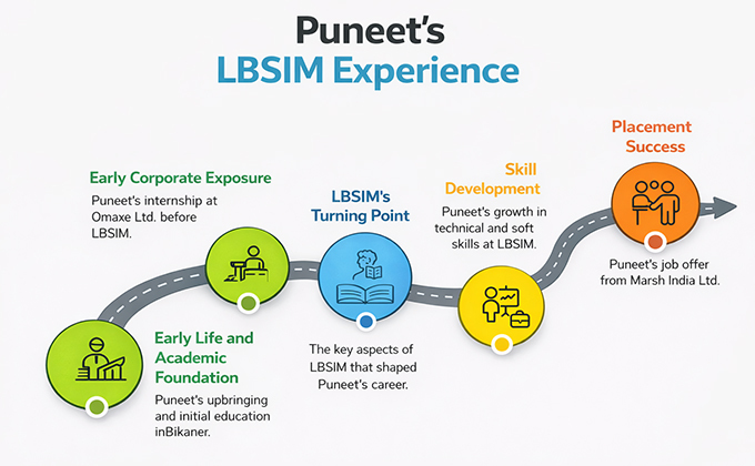 Have you ever wondered how one management school can impact a student's outlook, skills, and career? The story of Puneet Mundhra who came from Bikaner and landed a job at Marsh India Ltd. is a great example of how a mix of strong academic base, industry exposure, and holistic development at Lal Bahadur Shastri Institute of Management, Delhi can create magic. Puneet Mundhra was an exceptional student academically and was determined to develop further when he walked through LBSIM gates. The change he went through during the PGDM programme has not only unveiled his hard work and flexibility but also the university's mission to develop talents through real business scenarios and leading with values.